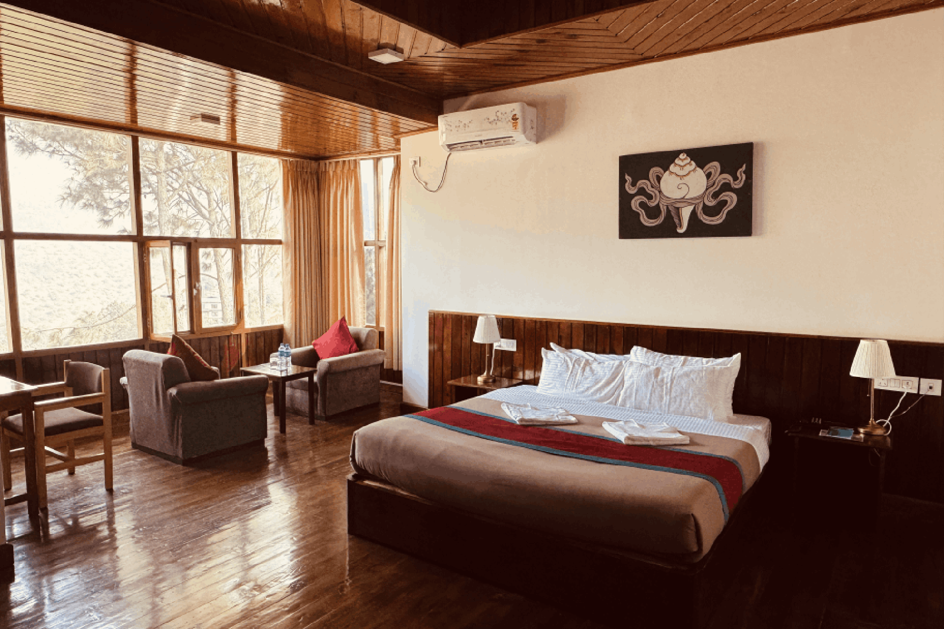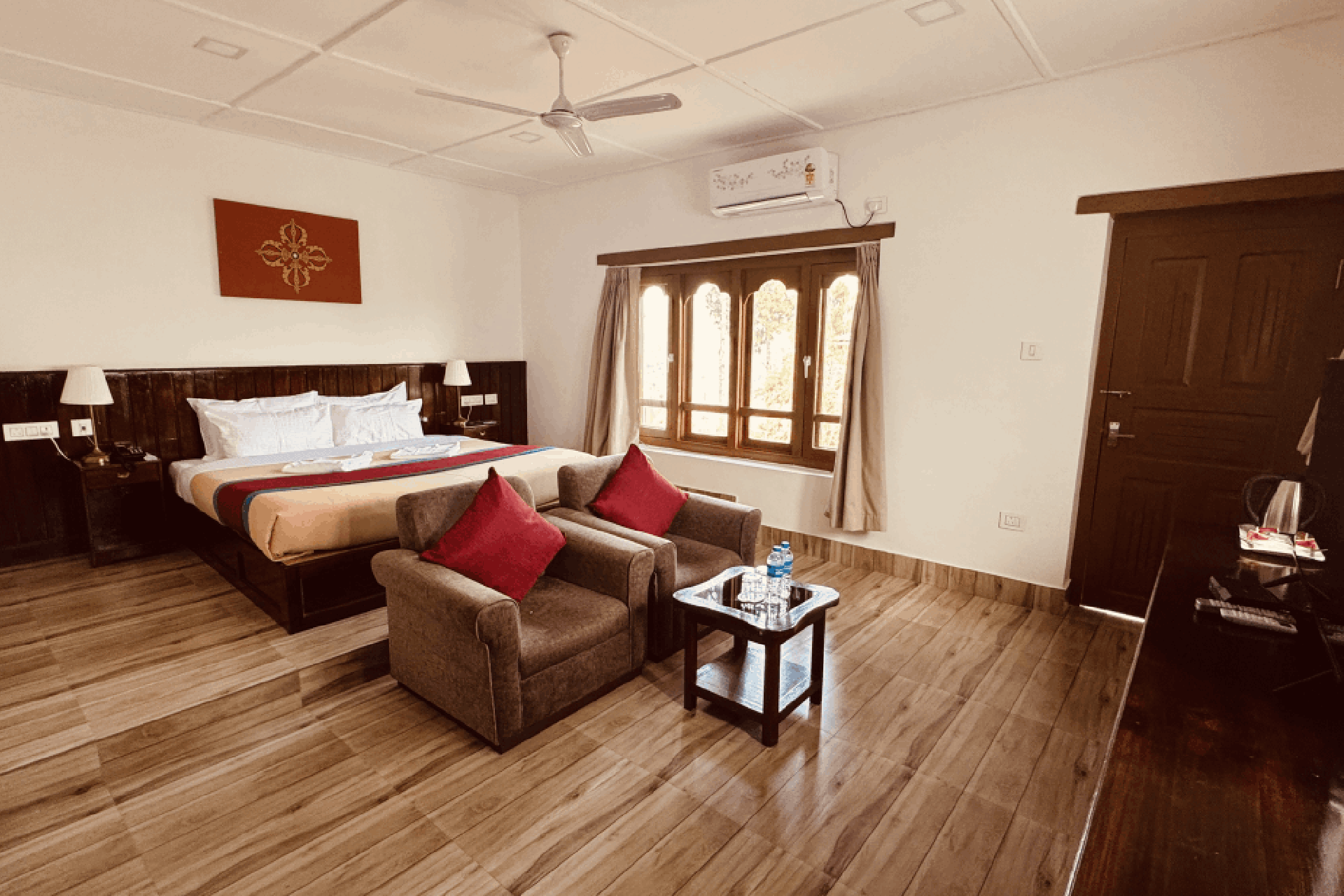 Our Deluxe rooms are spacious, comfortable and cozy with clean attached spacious bathrooms perfect for both leisure and business travellers. Free Wi-Fi access, smart TV, air conditioning and in-room tea makers add to your convenience and comfort.
